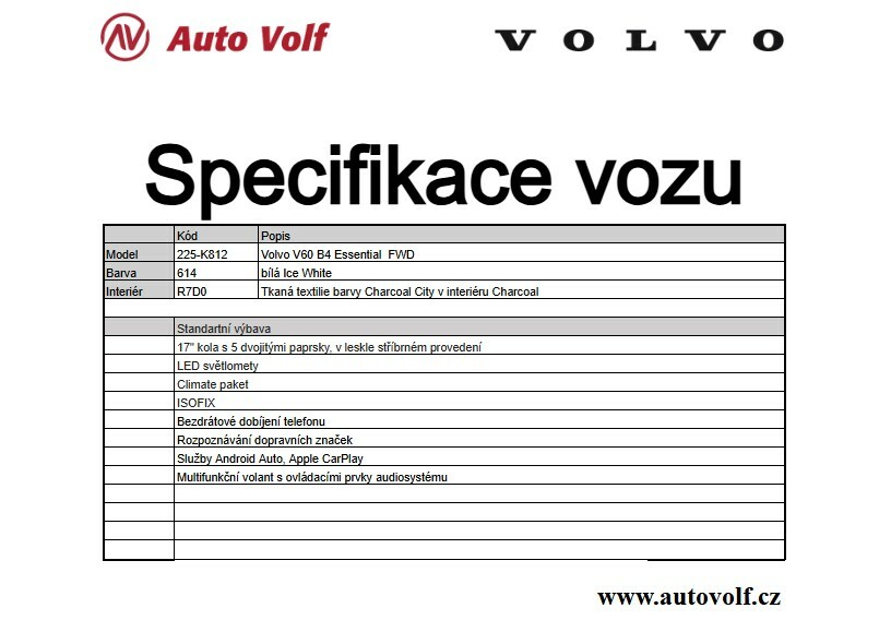 Poznámka: Uvedená výbava má pouze informativní charakter. Za chyby vzniklé v prezentaci neručíme. Pro detailní informaci o výbavě konkrétního vozidla prosím kontaktujte naše prodejce.