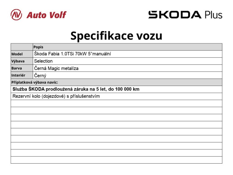 Tovární záruka Škoda na 5 let do 100 000 km od data uvedení do provozu zdarma.